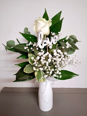 Not a fan of red not a problem with this classic design all in white Including the ceramic vase,