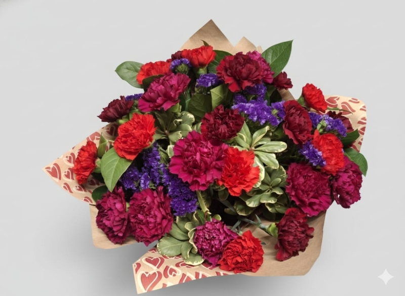 Romantic mix of carnations and foliage
